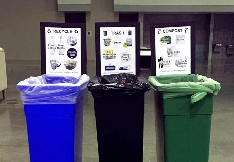 So it sounds like we are setup for success right? Not quite… Interspersed in our open floor plan are a smattering of labeled trash bins and recycling bins. What happens is, people eat lunch at their desk, and toss whatever they have, trash, recycling, or compost, into the NEAREST bin, regardless of how it is labeled.